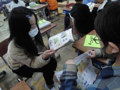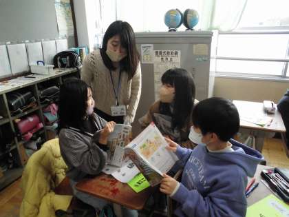 「ものがどこにあるのかをたずね合おう」の学習です。友だちとお互いにたずね合いました。