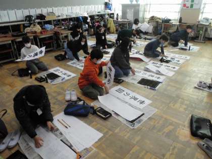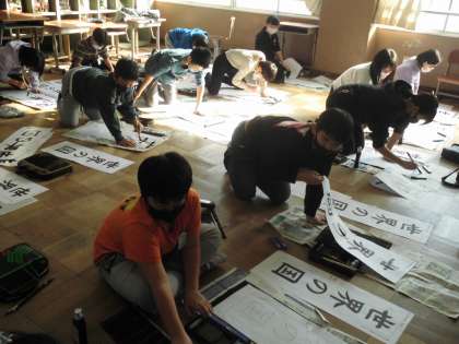 画仙紙に「世界の国」と書きました。とても難しい課題でしたが,みんな集中してよく頑張りました。
