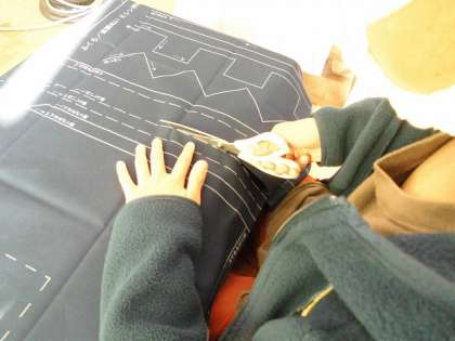 エプロンで使う布をサイズに合わせて裁ちました。ゆっくり丁寧に作業を進めていました。参観に来ていただきありがとうございました。