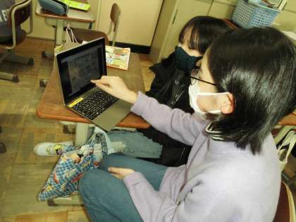 タブレットを使ってお互いに道案内をしました。相手の案内にあわせて地図の上のキャラクターを動かしました。