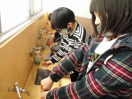 今日は特別寒くていつも以上に水は冷たい!でも雑巾がけをし,その後丁寧に洗っています。ありがとう。