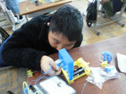 覗き込む!のぞき込む!くぎをつける。電磁石にくぎがどれくらいつくのかを確認しながら実験です。