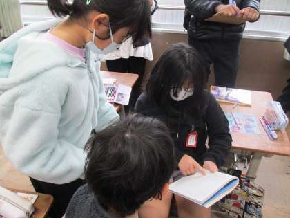 研究発表会がありました。帯分数と仮分数の大きさくらべをしました。自分の考えをノートに書いたり、友達に伝えたりしていました。