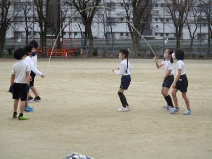 朝や中間休み、昼休みも大縄を楽しんでいます。連続して八の字が跳べるようになってきていました。