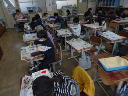 久しぶりの絵の具の時間でした。色混ぜがずいぶん上手になりました。自分が求めている色に近づいて思わず「やった!」とつぶやく子もいました。