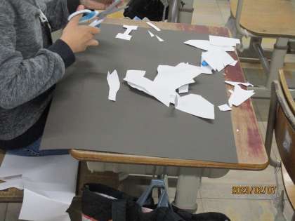 図工で「はさみあーと」の学習をしました。白い画用紙を適当に切って,何に見えるか考えます。切り始めると,自分の想像が広がりました。どんなものができるか,今から楽しみです。