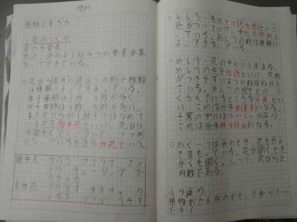授業で学習したことをもう一度自分で学習していますね。自分の関心のあることを調べたり追及したり,どのノートも個性的でとても素敵です。