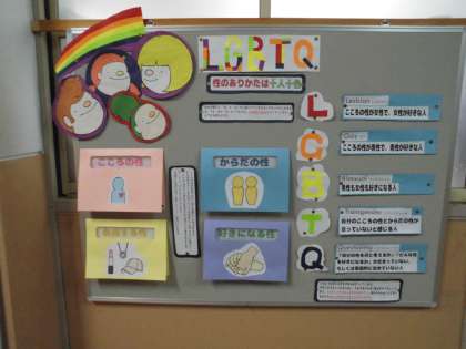 保健室の掲示板が美しく変わっていました。LGBTQについてみんなで考えるきっかけになればいいですね。お互いに認め合っていけると素敵ですね。