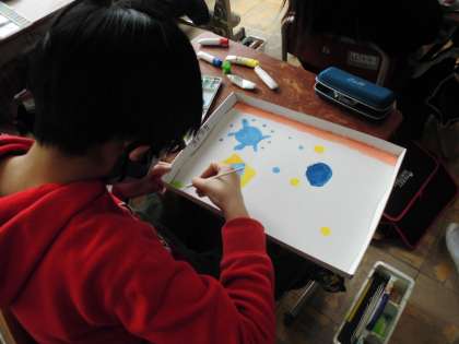 「わくわくプレイランド」の学習です。イメージを膨らませて丁寧に色を塗っています。