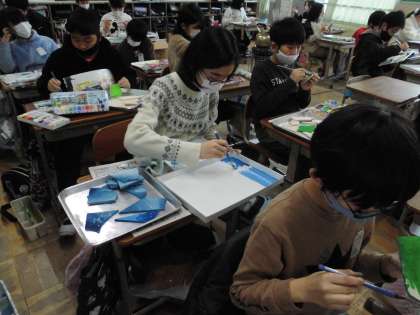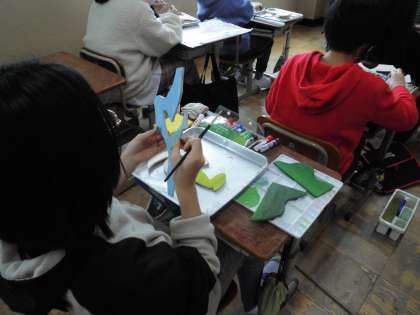 ワクワクするようなプレイランドにするために丁寧に色を塗っていました。