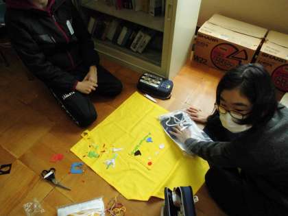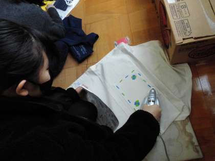 ミシンにトライ!いよいよエプロンの完成が近づいてきています。ポケットを付け,アップリケっで素敵に飾っています。