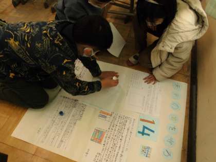 グループで工夫してまとめていますね。何度も話し合ってより良いものを目指して取り組んでいます。