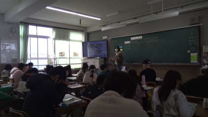 今日は外国語でお話を聞いて、その内容を考えました。教科書のイラストを見たり、ジェスチャーゲームをしたりしました。いつも楽しんで活動しています。