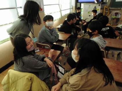 紹介したい人の名前やできること、性格などをお互いに伝えあっています。
