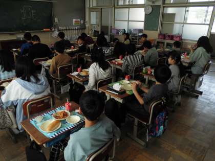 今年度初の給食でした。待ちに待った給食で、食べた後はみんなにっこり笑顔がこぼれました。準備や片付けも手際よく、完食もできました。いいスタートを切っています。