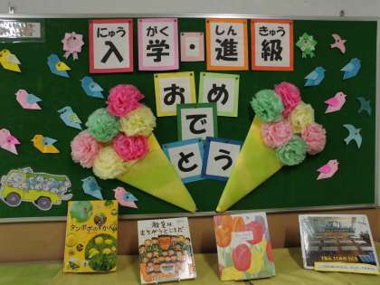 4月の掲示板です。ウキウキわくわくしてきますね。今年一年たくさん本を読みましょう。