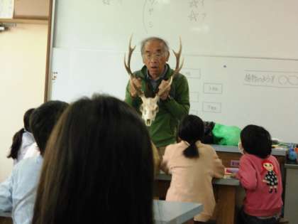 清水先生が山で拾った動物の骨に大興奮。