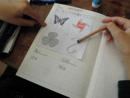 算数科の『対称な図形』の学習が始まりました。いろいろなものが左右対称になっていることに気づき、これからの学習の見通しをもつことができました。