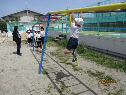2年生になり2段目まで遊ぶことができることに喜んでいる姿や安全にルールを守って遊ぶ姿が見られました。