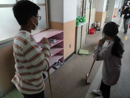 あおぞら教室付近を一緒に掃除しました。これから学年を跨いで交友を増やすことができるといいなと思います。