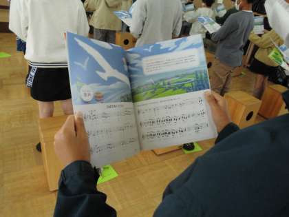 今日は6年生になって初めての音楽でした。今日は歌い方を工夫して『翼をください』を歌いました。抑揚をつけて一生懸命歌うことができました。