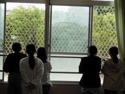 窓から何を眺めているのかな?昼休みのひとこまです。