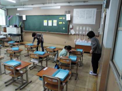 1年生の教室の掃除をしてくれています。丁寧に心を込めて掃除をしています。さすがです。ありがとう!