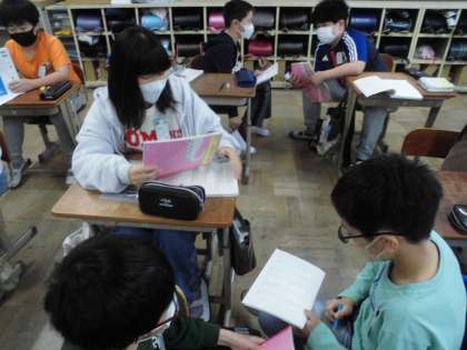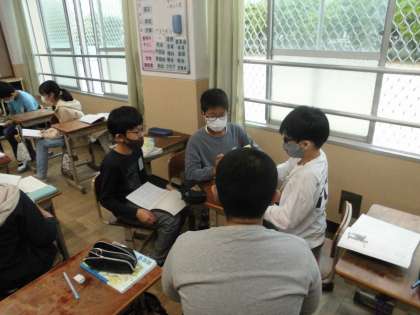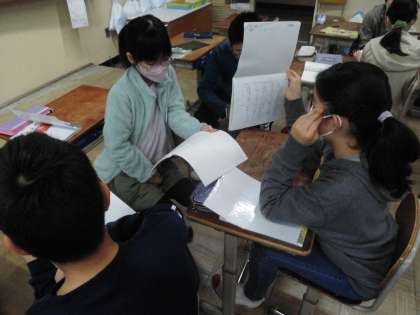 国語の帰り道で、『律』と『周也』の人物像を考え、交流しました。2人の心の距離や関わり方をよく考え、それぞれの考えを伝えあっていました。