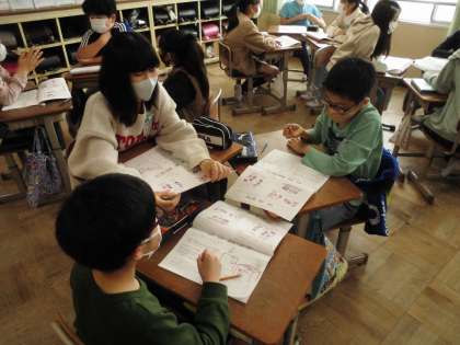 安全学習で遊具の使い方やけがを防ぐためにどうすれば良いのか考えました。ルールは安心・安全のためにあることを再確認し、これからの意気込みをまとめていました。