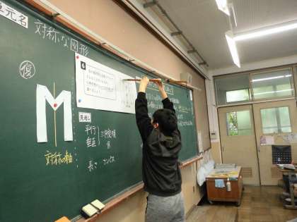対称な図形の学習です。どの良いを得たのかをみんなに発表しました。