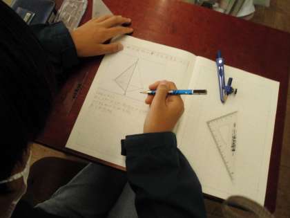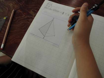 今まで学んだことや、前回学んだ条件をもとに線対称の図形をかきました。実際にみんなで確かめ合いもしました。