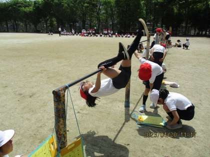 本日より、てつぼうあそびの学習を始めました。初回は、1年生の時に学習したことを思い出しながら、いろいろな技を試しました。