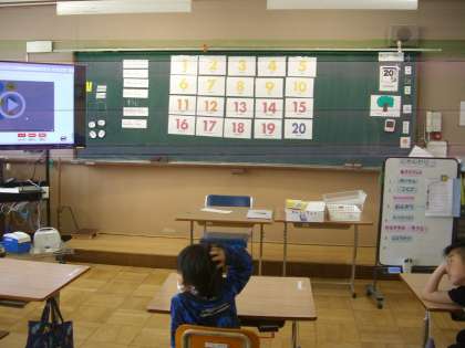 英語にチャレンジしました。数字を英語で話したり,自分の気持ちを話したりしました。最後は数字ビンゴをしました。とても楽しく活動することができました。