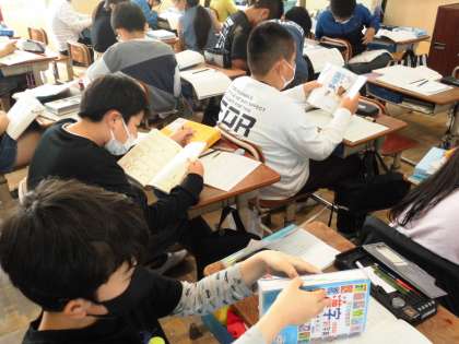 漢字の成り立ちを調べました。久しぶりに使う辞典、食い入るようにページをめくっていました。