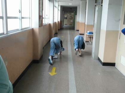 廊下を雑巾がけしてくれています。いつもきれいにしてくれて本当にありがとう。