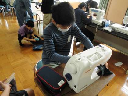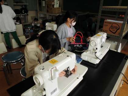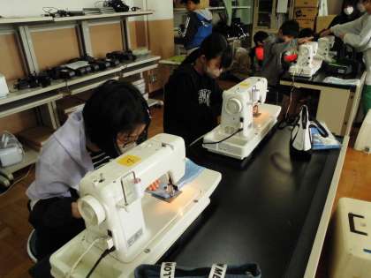 ナップザックを作っています。丁寧にミシンを使って取り組んでいますね。