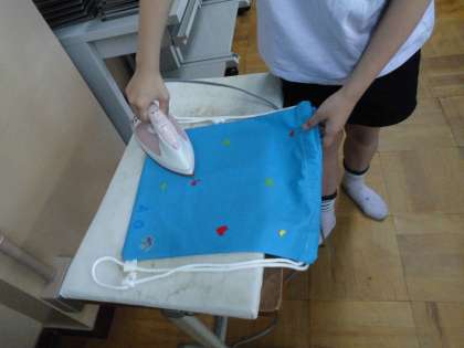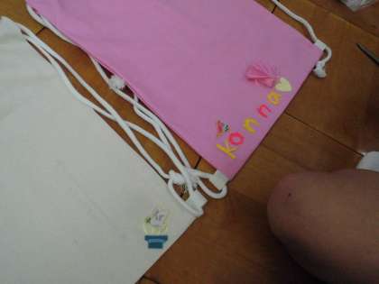 袋型に完成し、あとは好きなワッペンやフェルトをつけるだけです!修学旅行に持っていきます。