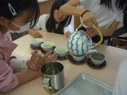 あおぞら学級 交流学習の家庭科でお茶を入れました