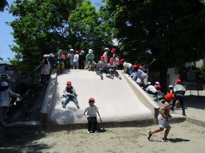 安全に気を付け,ルールを守って行動することができました。帰りに少しだけ公園で遊んで帰りました。連休明けにも町に出て,探検をする予定です。