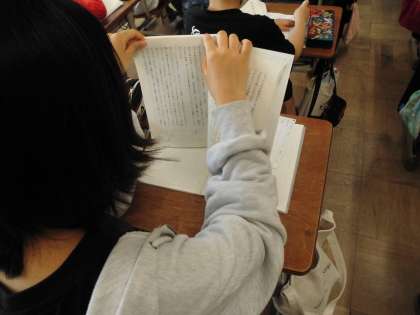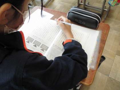 2つの時間にはどんな違いがあるのかよく聞いて考えたり、筆者が伝えているのは主張か事例かを見極めたりしていました。根拠をもって話すためにはどうすれば良いのかを学びながら進めてほしいと思います。