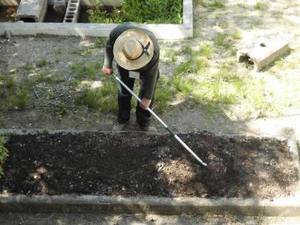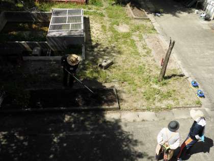 中庭の畑を耕してくださっています。熱い中ありがとうございます。