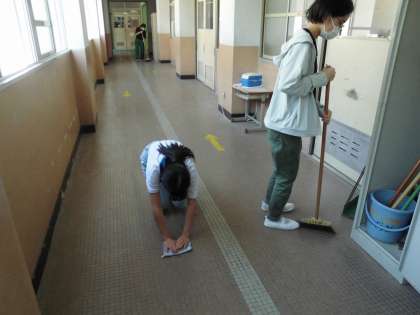 隅々まできれいに丁寧に!さすが6年生。きちんと掃除をしています。いつも本当にありがとう。