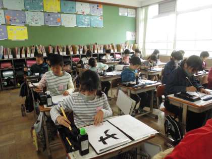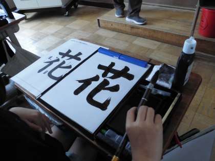書写の時間に「花」という字を書きました。止めやはらいに気を付けながら集中して取り組んでいました。