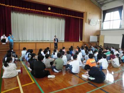 「1年生を迎える会」では準備や片付けに大活躍でした。終了後、校長先生から頑張っていることをたくさん褒めていただきました。やったね!