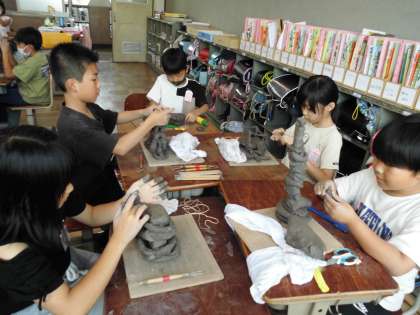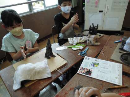 本物の粘土に触れて、たくさんつぶやきながら 夢中で制作する子どもたち。
