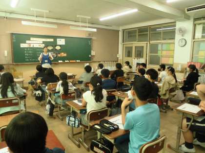 栄養教諭の先生から、食に関する指導を受けました。今回は食事のバランスとカロリーについて考えました。高カロリーやバランスの悪い食事を食べ続けることで、中性脂肪が増え、病気につながることを知りました。体を大切にしていきましょう。