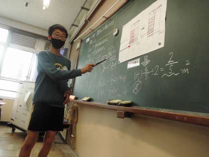 分数÷整数の計算方法を考えました。上手に説明する練習もしました。