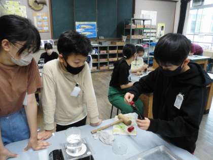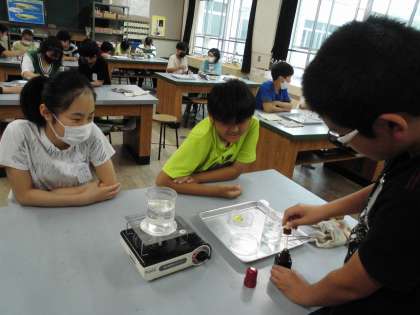 「植物の成長と日光のかかわり」の学習です。ジャガイモの葉にでんぷんがあるのかを調べました。