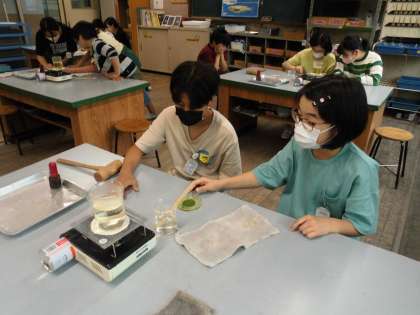 グループで協力して実験に取り組みます。さて、ヨウ素デンプン反応はみられるでしょうか?