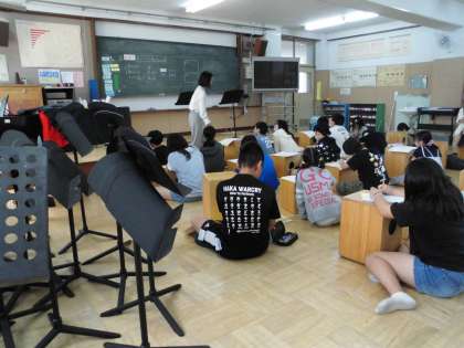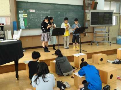 みんなの前でリコーダー演奏をしました。ちょっと緊張ぎみの子どもたちもいましたが、グループ練習の成果を発揮していました。